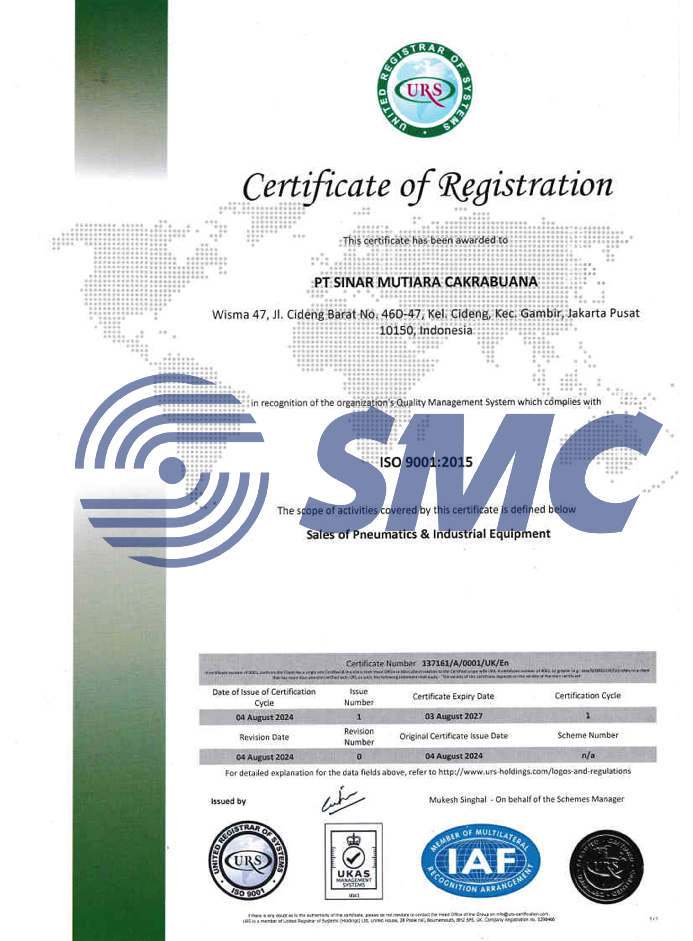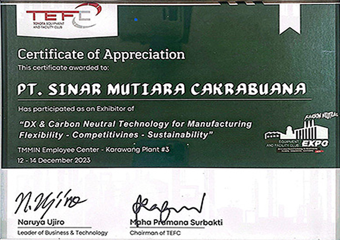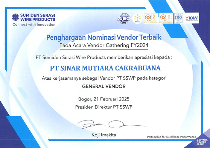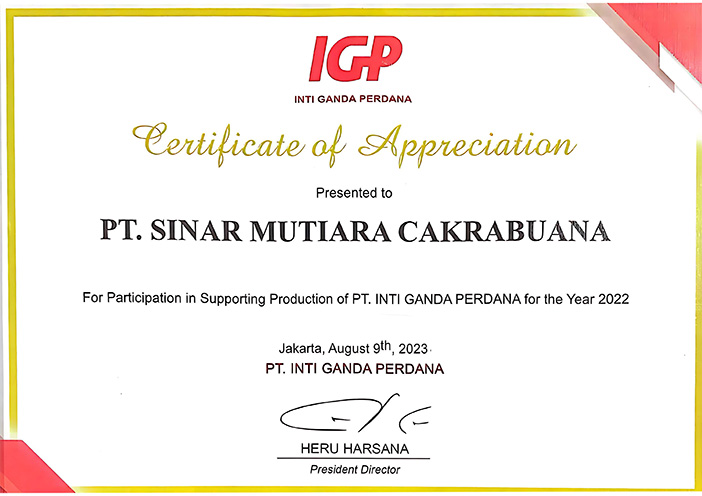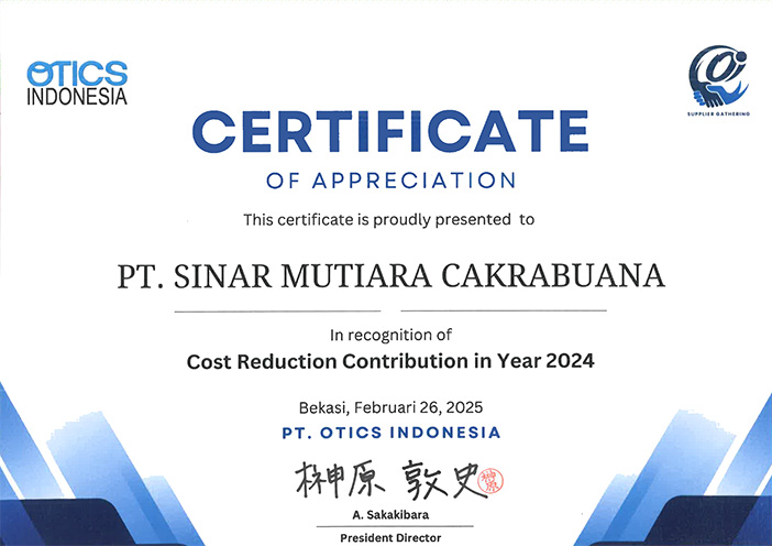 PT. SInar Mutiara Cakrabuana have been assessed and certified as meeting the requirements of ISO 9001:2015 for the international standard for quality management system. Having this means we maintain effective management as to provide superior products and services to meet customers needs.